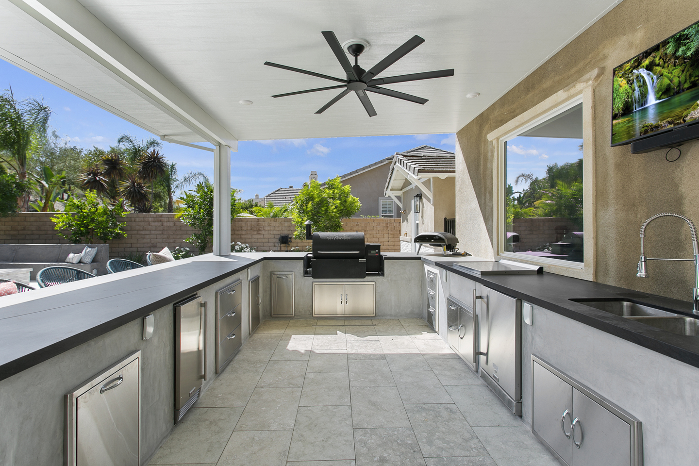 The Ridge Route Road Residence is a perfect example of how outdoor living spaces can become an extension of a home’s core design, offering both relaxation and functionality. At the heart of this project lies a beautiful, expansive outdoor area that invites nature in. With large bi-fold doors that open up seamlessly to the patio, this space offers breathtaking views of the surrounding landscape. The patio was designed for both entertaining and quiet moments of relaxation, featuring stylish outdoor furniture and plenty of greenery to enhance the peaceful, natural surroundings. The lush garden and well-maintained landscaping create a serene atmosphere, while strategically placed lighting ensures that this outdoor oasis can be enjoyed both day and night.