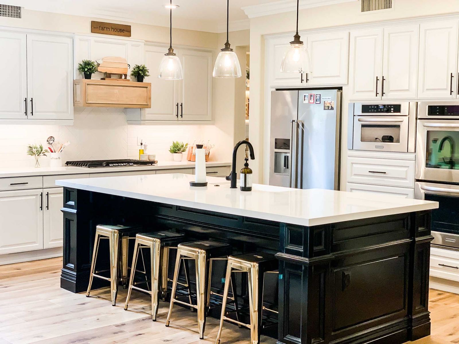 Moving inside, the kitchen is a focal point of the home. Designed with both style and function in mind, it features top-of-the-line appliances, sleek cabinetry, and a central island that serves as both a workspace and a social hub. The marble countertops add an element of sophistication, while the open shelving adds practicality and style. The design encourages interaction, making it perfect for hosting family gatherings or intimate dinners.